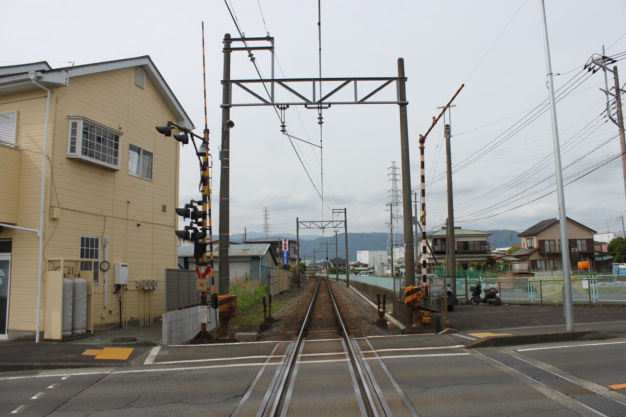 準幹線道路である県道が交差する第1種踏切です。