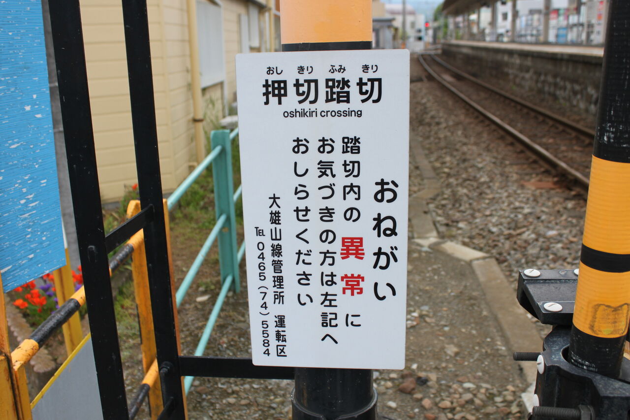 伊豆箱根鉄道の「おねがい」看板に記載がある踏切名称には英語表記が記載されています。「ふり仮名」が併記されている事例は多数ありますが、ローマ字表記があるのはいずっぱこさんぐらいでしょう。「oshikiri crossing」と表記されています。