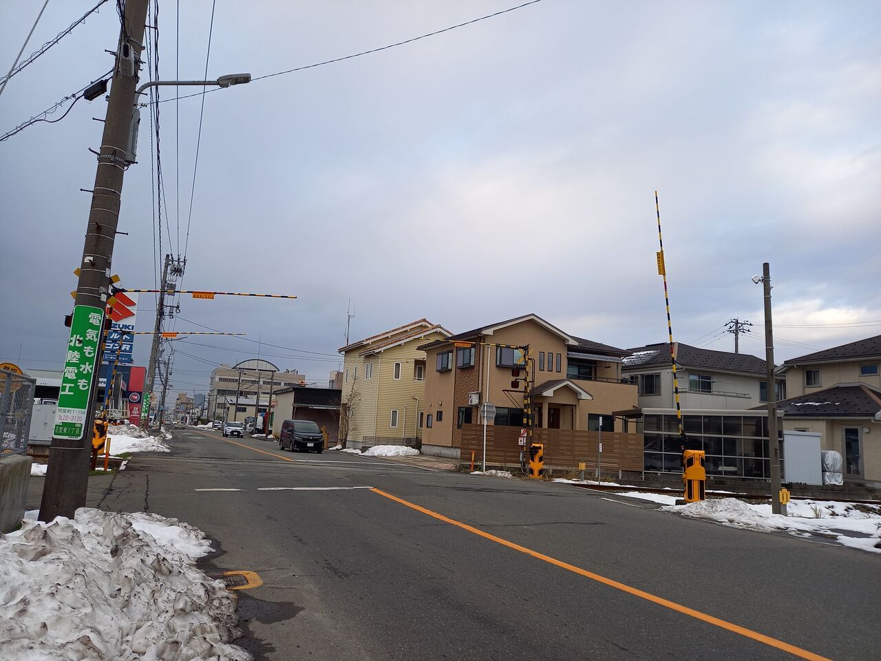準幹線道路で車両の往来が多い道路が交差する第1種踏切です。