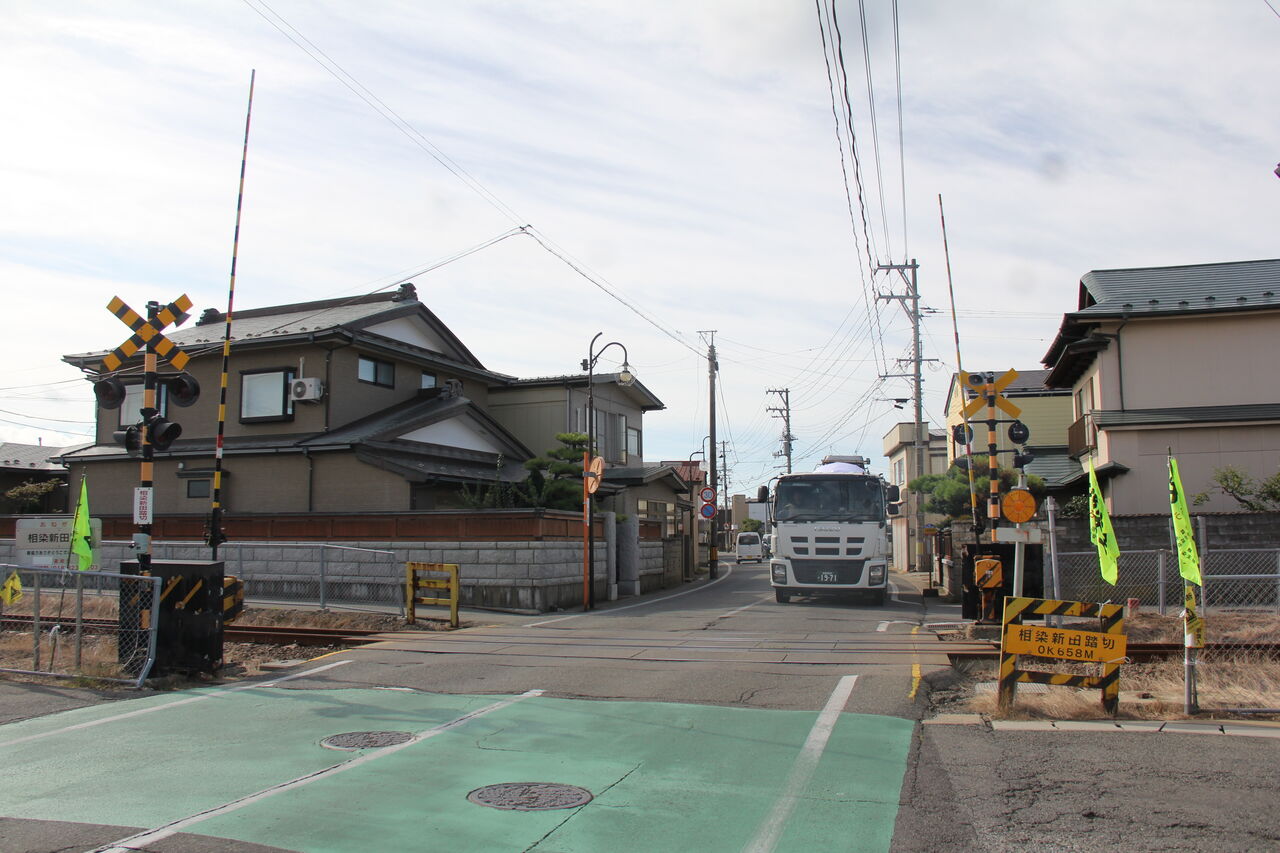 2025年03月12日 [JR奥羽線(貨物支線)]相染新田踏切(0k658m) 〔踏切名称〕:相染新田踏切〔所在区間〕:JR奥羽線(貨物支線) 土崎・秋田港間〔地点距離程〕:土崎起点 0k658m〔管理事業者〕:日本貨物鉄道〔踏切所在地〕:秋田県秋田市土崎港中央七丁目〔交差道路〕:羽州街道〔踏切種別〕:第4種踏切(自動車通行不可)続きを読む タグ :#奥羽線#秋田県#貨物専用線#第1種踏切