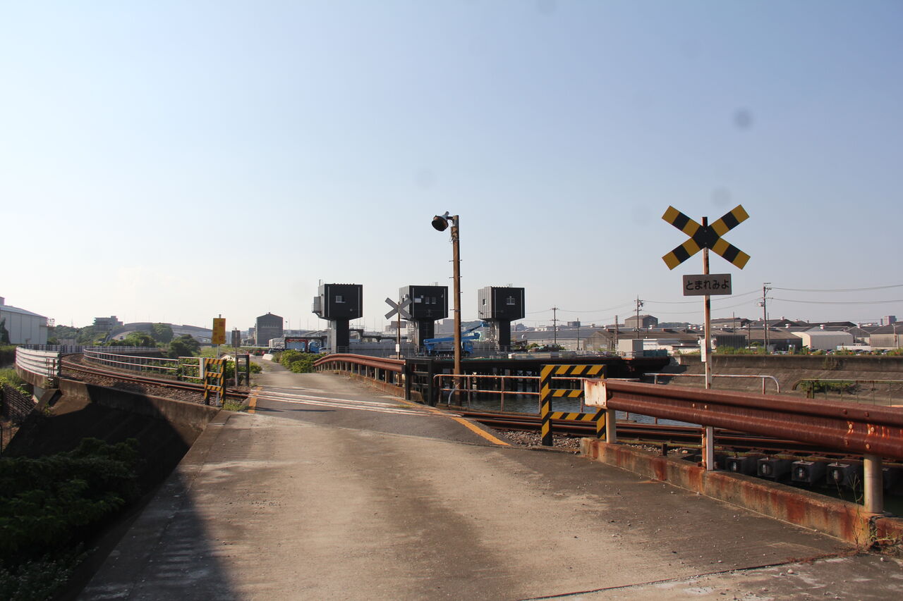 2025年05月09日 [KR半田線]川崎町踏切(2k445m) 〔踏切名称〕:川崎町踏切〔所在区間〕:半田線 半田埠頭・東成岩間〔地点距離程〕:半田埠頭起点 2k445m〔管理事業者〕:衣浦臨海鉄道〔踏切所在地〕:愛知県半田市川崎町一丁目73番〔交差道路〕:半田市道・川崎1号線(8436)〔踏切種別〕:第4種踏切(自動車通行可)続きを読む タグ :#衣浦臨海鉄道半田線#貨物専用線#愛知県#第4種踏切