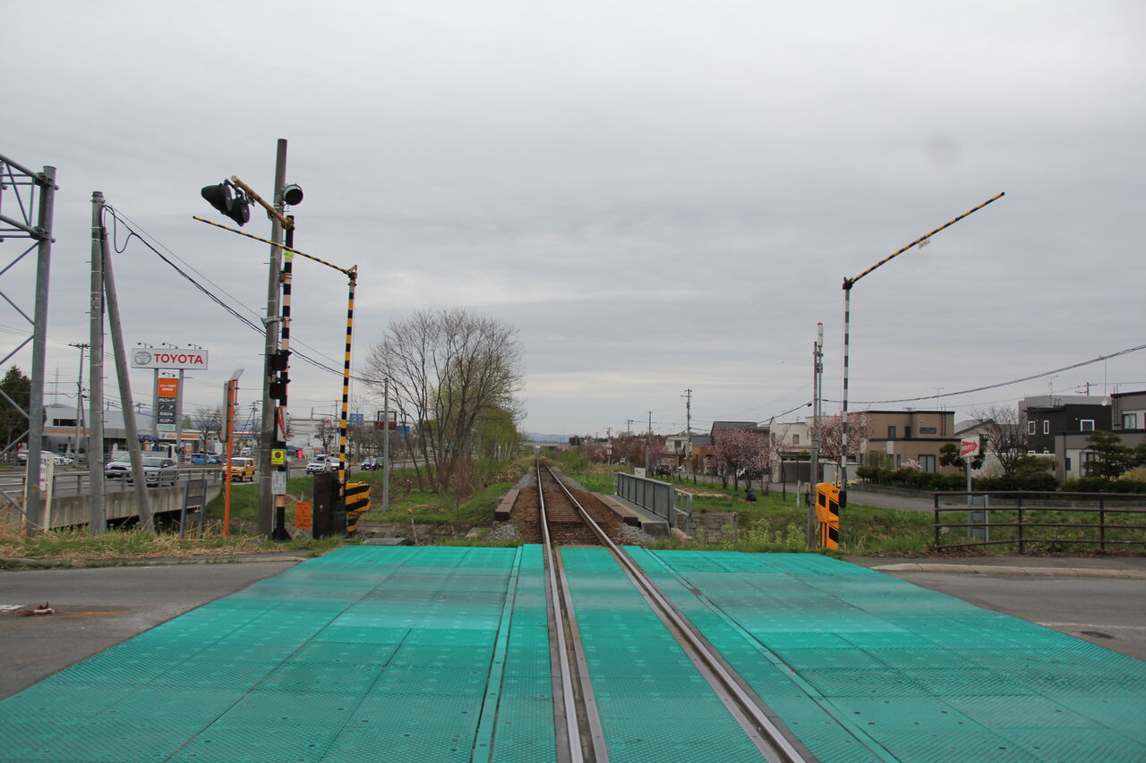 旭川市西御料エリアにある第1種踏切です。