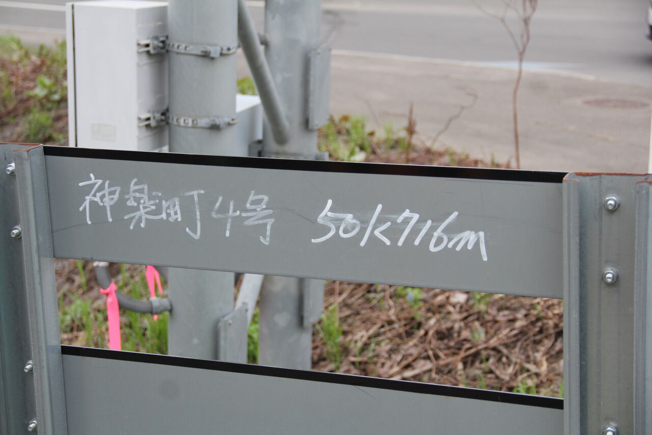 踏切名称は「神楽町4号踏切」といいます。当踏切も安全柵に手書きで名称と距離程が記されています。当踏切に限らず富良野線の踏切ではこのような表記が多数確認できます。