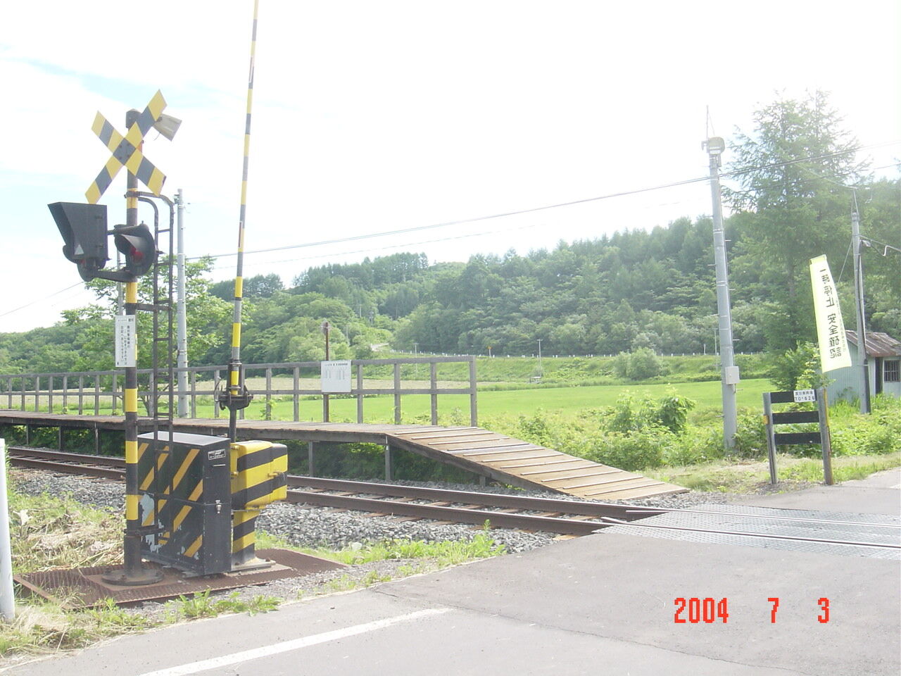 2021年09月02日 [CRふるさと銀河線]笹森踏切(62k150m付近) 〔踏切名称〕:笹森踏切〔所在区間〕:CRふるさと銀河線 上利別・笹森間〔地点距離程〕:池田起点 62k150m付近〔管理事業者〕:北海道ちほく高原鉄道〔踏切所在地〕:北海道足寄郡足寄町大誉地〔踏切種別〕:第3種踏切(自動車通行可)※2006年4月20日路線廃止続きを読む タグ :#ふるさと銀河線#北海道#廃線#第3種踏切
