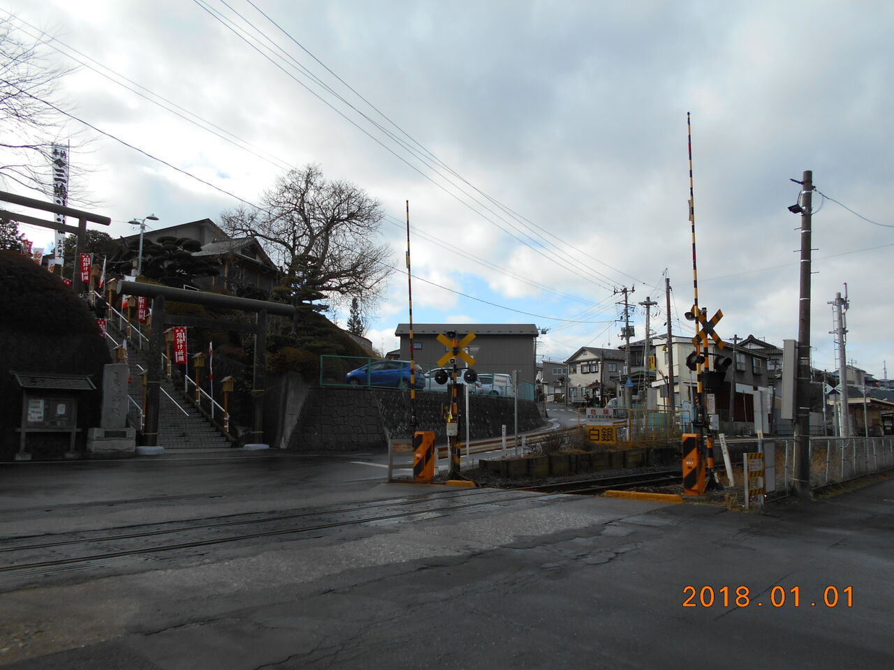 2021年03月18日 [JR八戸線]三島踏切(10k304m) 〔踏切名称〕:三島踏切〔所在区間〕:JR八戸線 白銀・鮫間〔地点距離程〕:八戸起点 10k304m〔管理事業者〕:東日本旅客鉄道〔踏切所在地〕:青森県八戸市白銀一丁目〔踏切種別〕:第1種踏切(自動車通行可) JR白銀駅に近接している第1種踏切です。 踏切の前には三島神社があります。訪問当日は元日で、参拝客で賑わっていました。 踏切名称は「三島踏切」。由来は言うまでもなく目の前にある神社のようです。 「おねがい看板」が一緒に写るアングル、、、 当踏切から白銀・八戸方、上り方向を見た図です。すぐに白銀駅へ至ります。〔アクセス〕JR白銀駅から徒歩2分〔訪問調査日〕2018年1月1日 「JR東日本」カテゴリの最新記事 「八戸線」カテゴリの最新記事 タグ :#八戸線#第1種踏切#青森県 コメント コメントフォーム 名前 コメント 評価する リセット リセット 顔 星 投稿する 情報を記憶