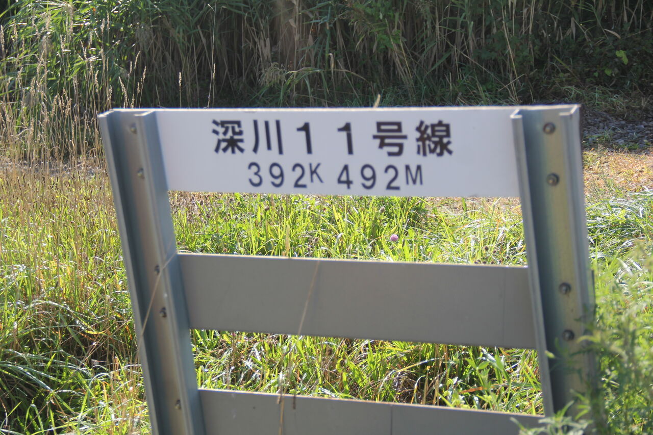 名称は「深川11号線踏切」です。交差道路は深川市制定の1級道路で、そのものズバリ11号線と名付けられています。踏切名称はそのズバリな名称に地名を冠しています。