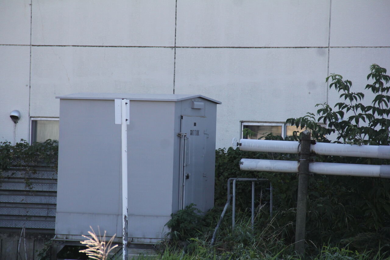 踏切端子盤収容箱には「深川11XK」と記されています。道路側から視認できなかったため、隣接している公園から覗き見て確認しました。