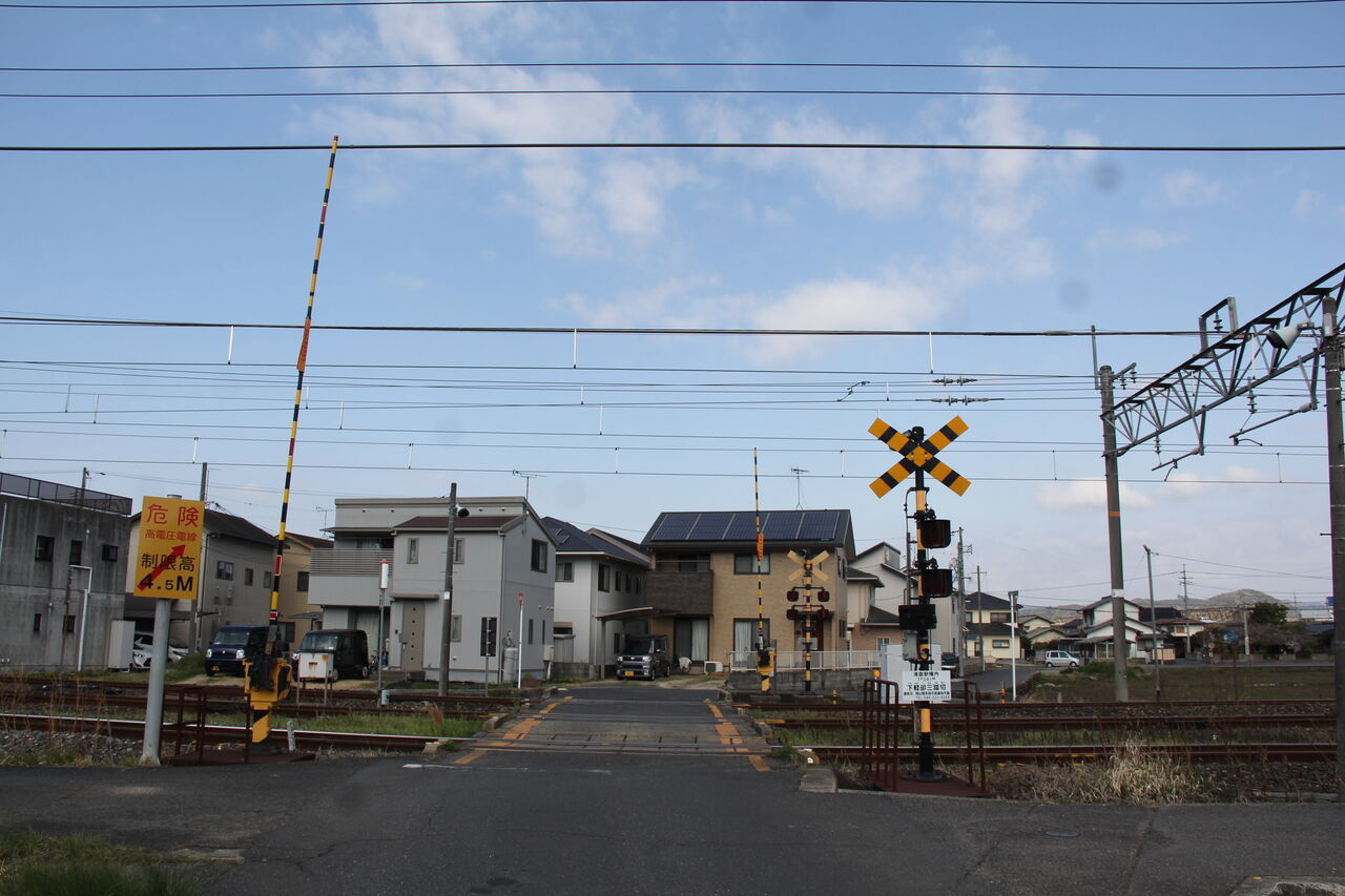 2025年04月06日 [JR伯備線,IBT井原線]下軽部三踏切(7k091m,3k578m) 〔踏切名称〕:下軽部三踏切〔所在区間:1〕:JR伯備線 倉敷・清音間〔地点距離程:1〕:倉敷起点 7k091m〔所在区間:2〕:IBT井原線 清音・川辺宿間〔地点距離程:2〕:総社起点 3k578m〔管理事業者〕:西日本旅客鉄道・井原鉄道〔踏切所在地〕:岡山県総社市清音軽部〔交差道路〕:総社市道・上中島軽部線(2106)〔踏切種別〕:第1種踏切(自動車通行可)続きを読む タグ :#伯備線#井原線#第1種踏切#共用踏切#岡山県#第3・三踏切