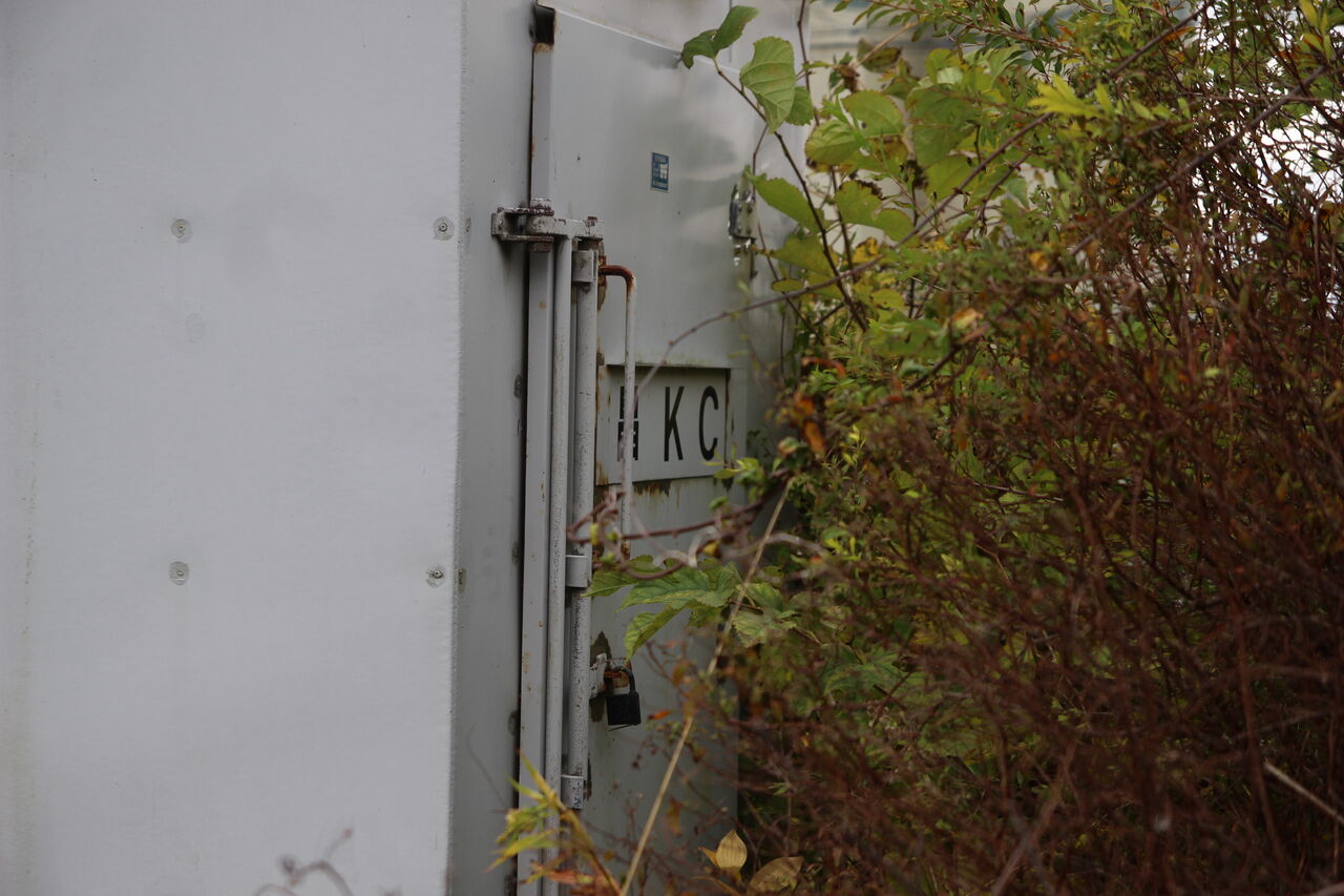 ↑こちらは踏切端子盤収納ボックスです。「昌KC」の文字が見えます。