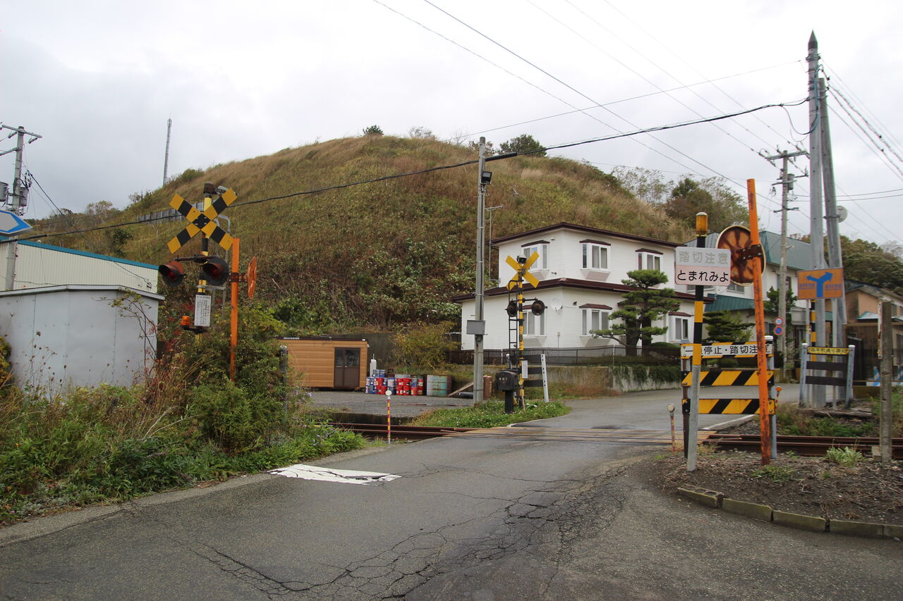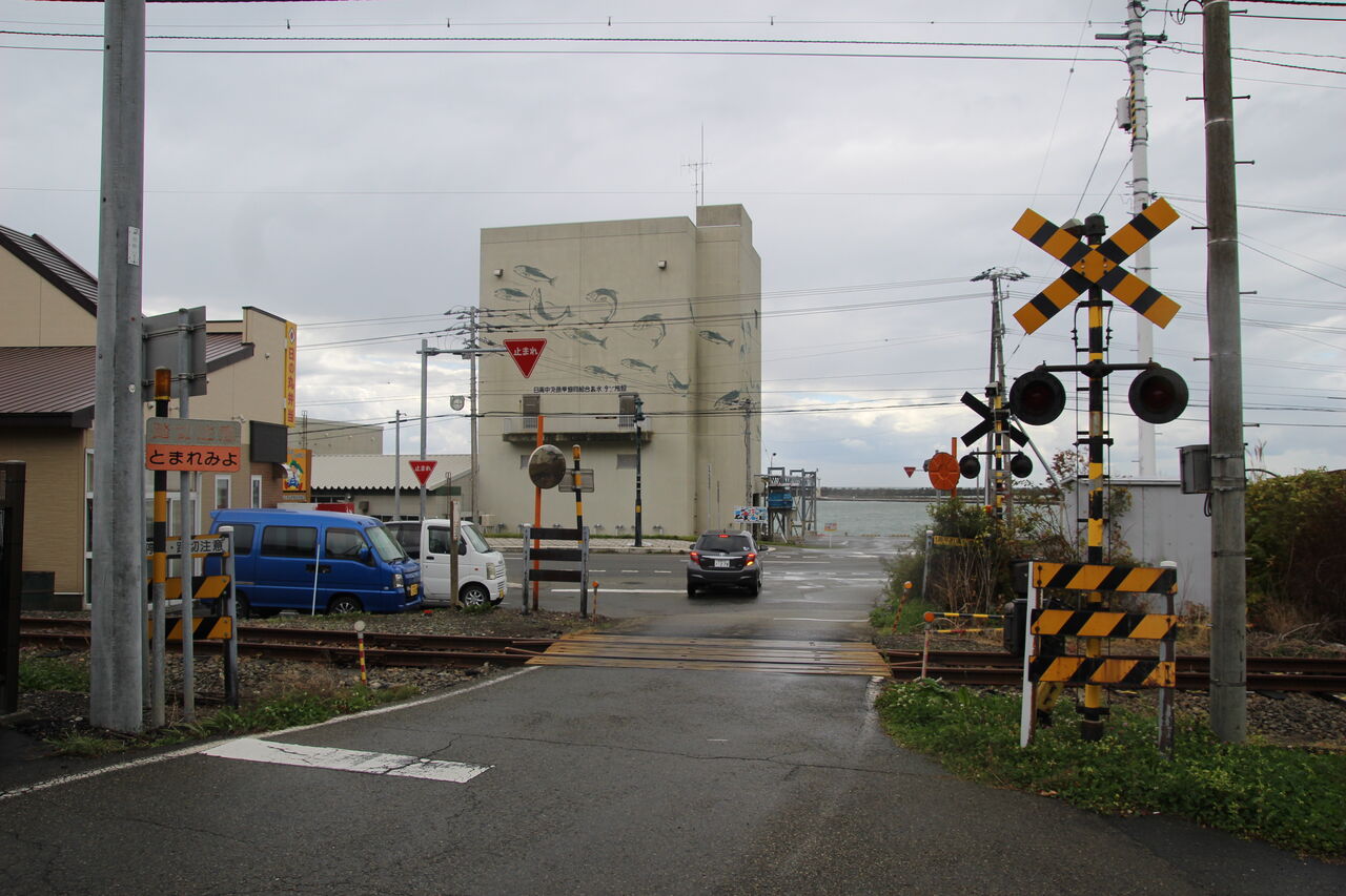 浦河町の中心部から住宅地へ抜ける道路が交差する第1種踏切です。