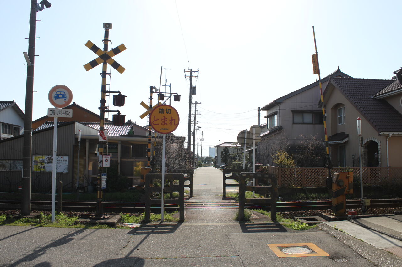 2022年12月30日 [JR氷見線]新国分踏切(8k880m) 〔踏切名称〕:新国分踏切〔所在区間〕:JR氷見線 伏木・越中国分間〔地点距離程〕:高岡起点 8k880m〔管理事業者〕:西日本旅客鉄道〔踏切所在地〕:富山県高岡市伏木国分二丁目〔管理事業者〕:富山県道245号・中道国分線〔踏切種別〕:第1種踏切(自動車通行可)続きを読む タグ :#氷見線#第1種踏切#富山県