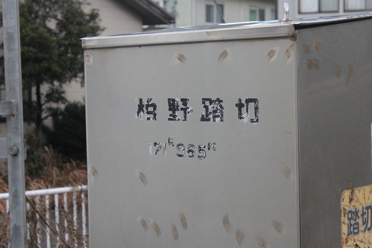 踏切端子盤収納箱には踏切名称と米原起点の距離程が記されています。