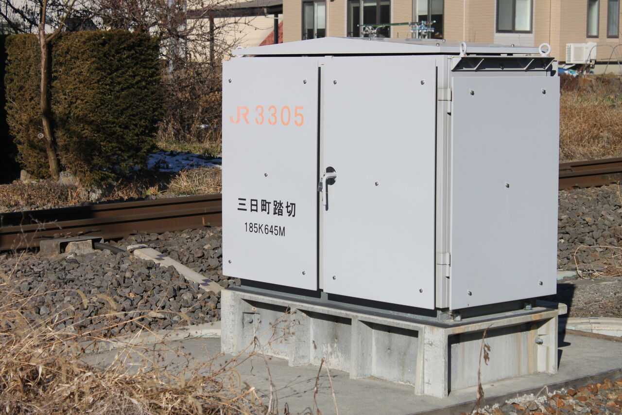 JR東海の踏切番号(3305)が記されている踏切端子盤収納箱です。