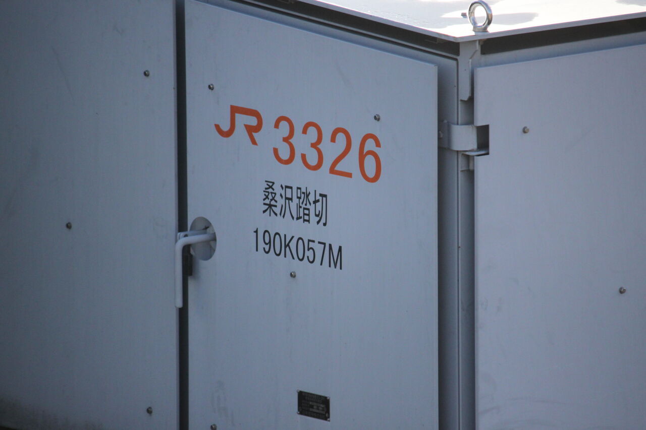 JR東海の踏切番号(3326)が記されている踏切端子盤収納箱です。