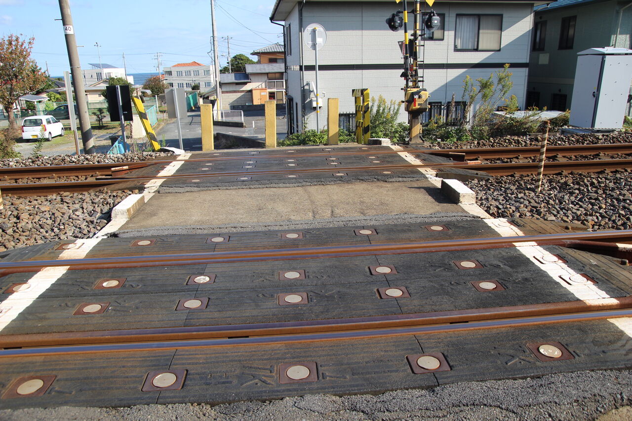 踏切内部の様子です。車両通行止めとはいえ、しっかりとした踏切板へ更新されています。さすが天下のJR東日本といったところですな。