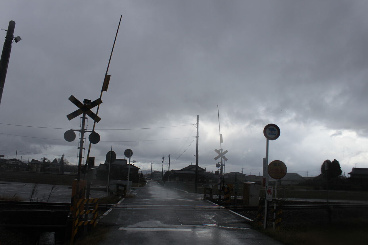 JR東野尻駅に程近いものの周囲を田んぼに囲まれた場所にある第1種踏切です。