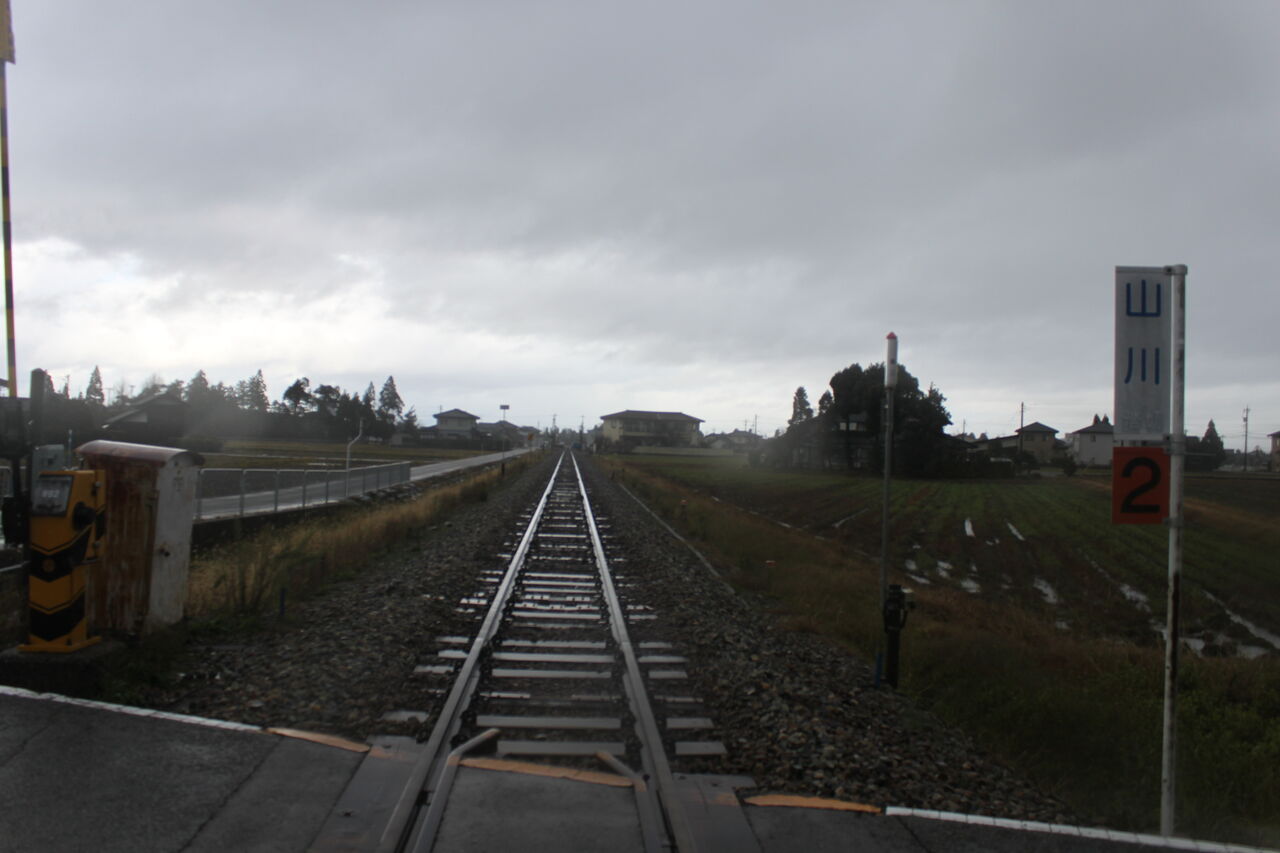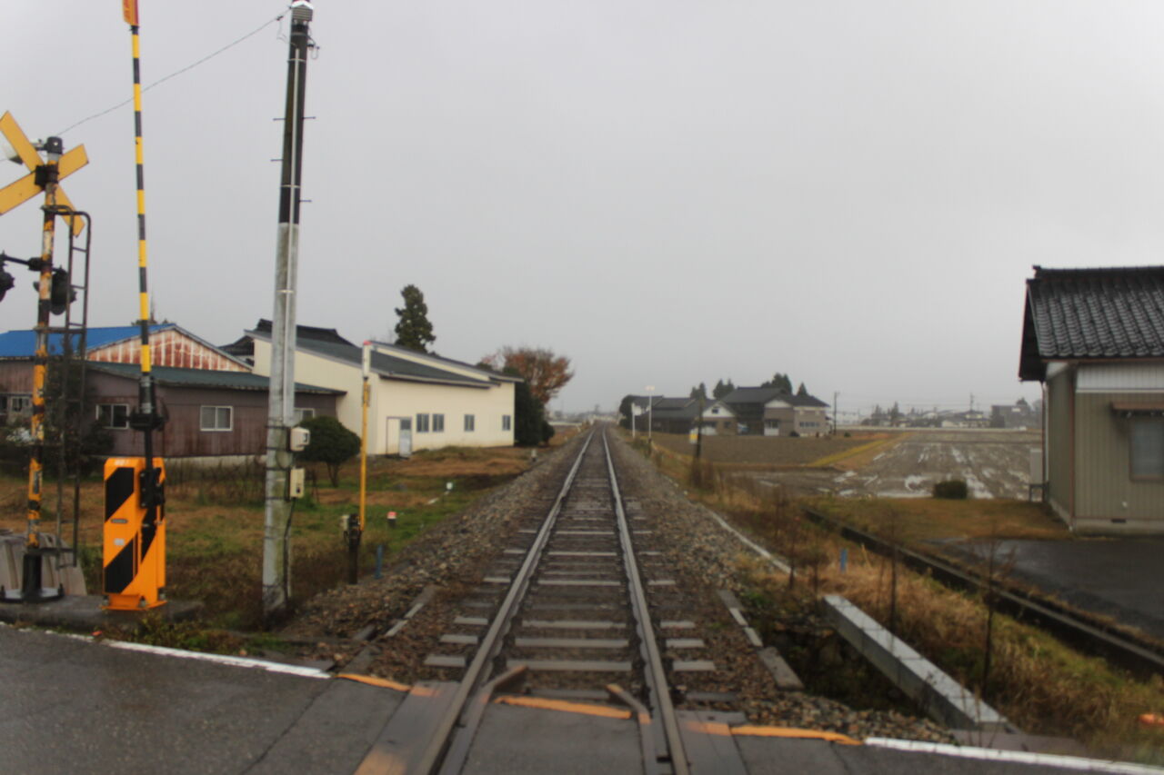 ↑東野尻・高岡方、上り方向の線路です。この先3つの踏切を経て東野尻駅に至ります。