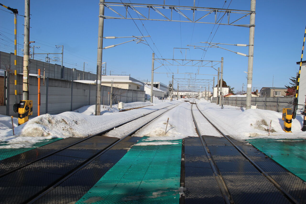 海峡線を走行する列車はレール幅が狭軌(1,067mm)サイズで、木古内駅の手前にある分岐点で新幹線標準機と海峡線狭軌が分かれ、海峡線は当踏切を経て道南いさりび鉄道線の木古内駅へ至ります。