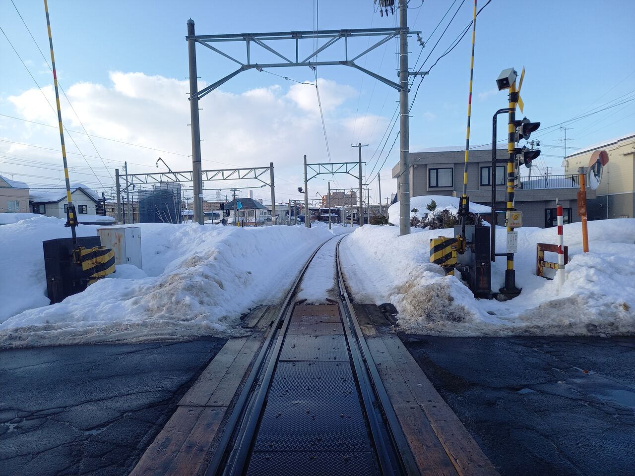 弘南線の起点・弘前駅から数えて最初の踏切です。弘前市中心部に程近いため、また付近に商業施設(食品スーパーやドラッグストア—)があるため、そこへの来訪目的で自動車の往来は多いです。