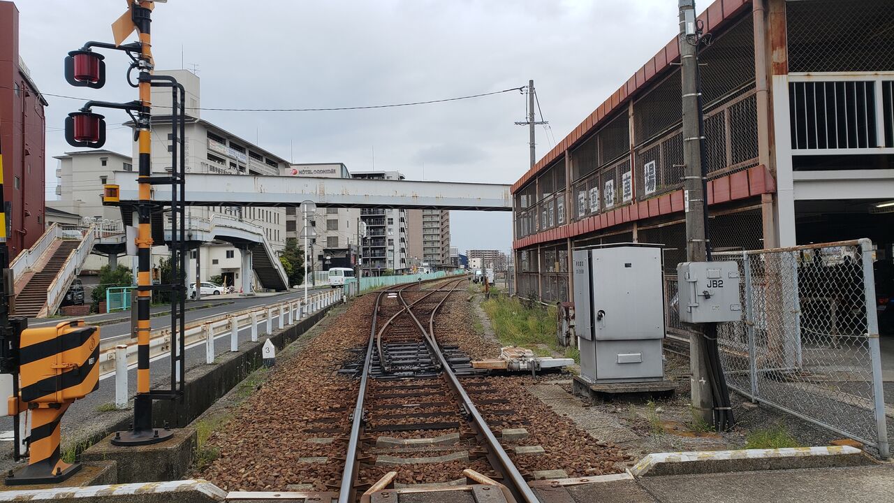 ↑こちらは球場前・三菱自工前方、下り方向の線路です。