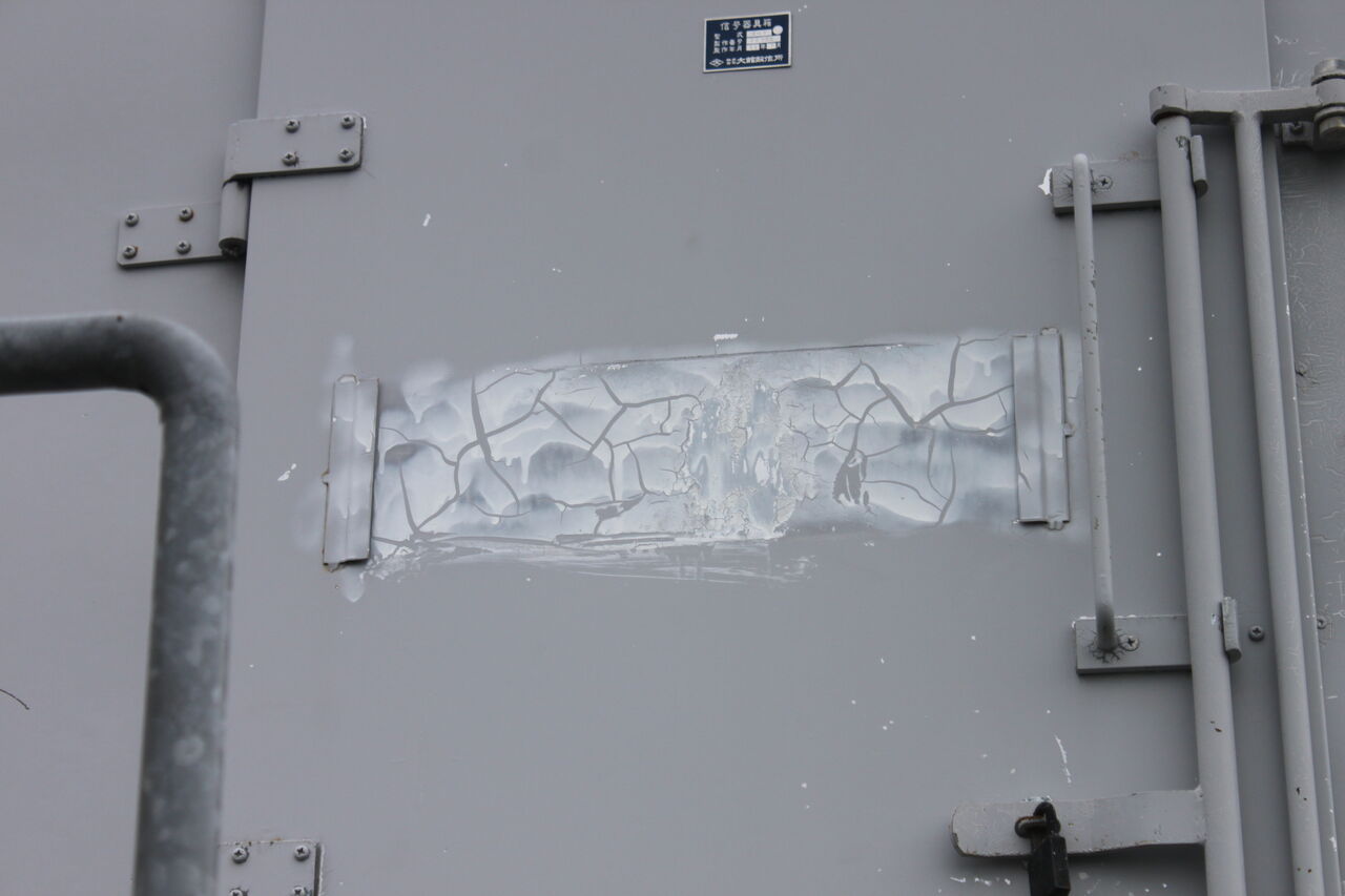 踏切端子盤収容箱には記号が記載されていたとみられる箇所が・・・