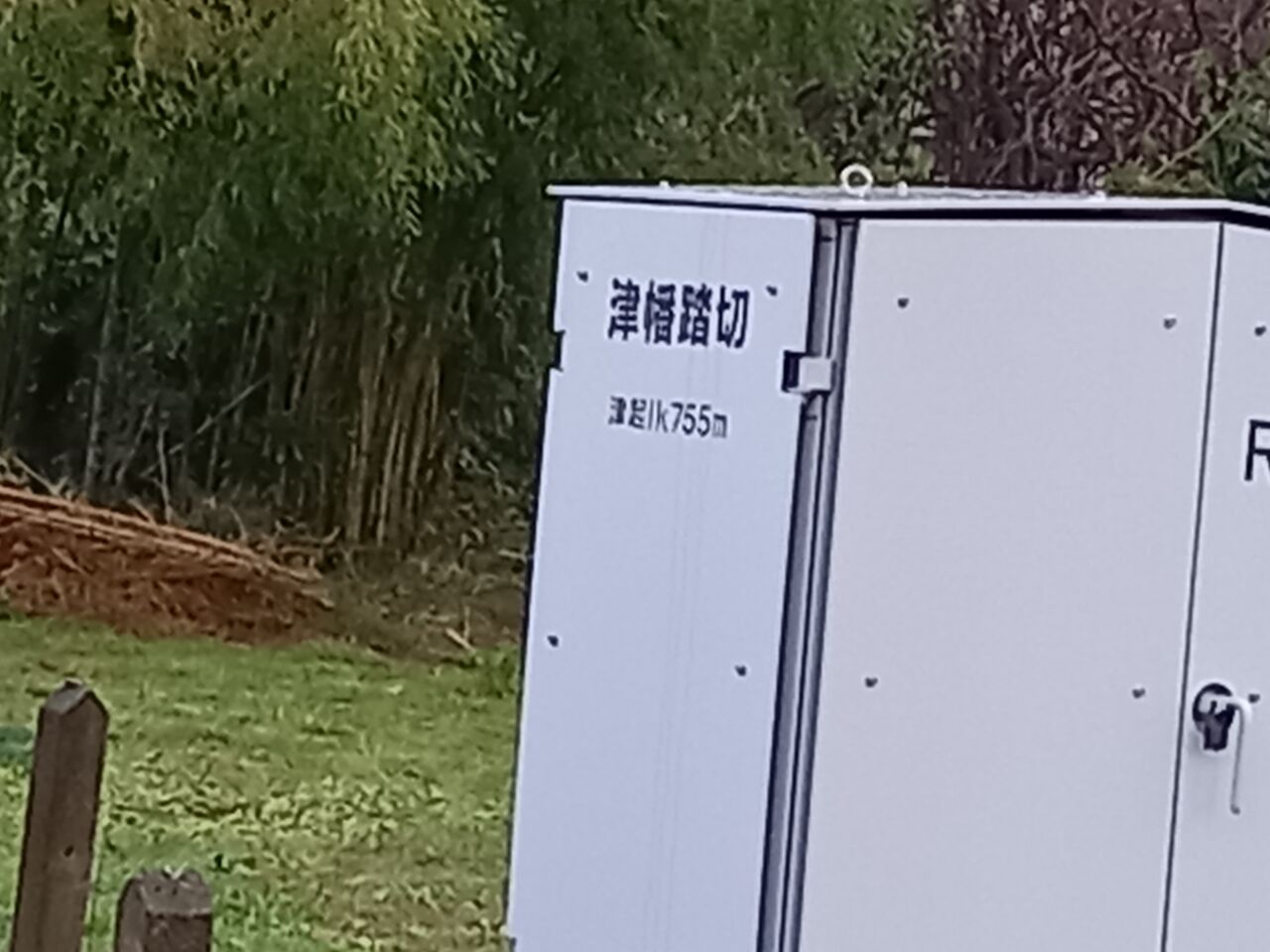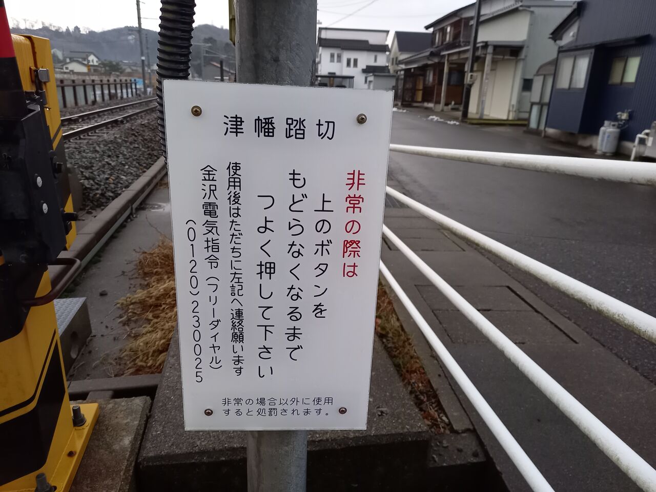 踏切端子盤収容箱には名称と津幡起点の距離程が記されています。
