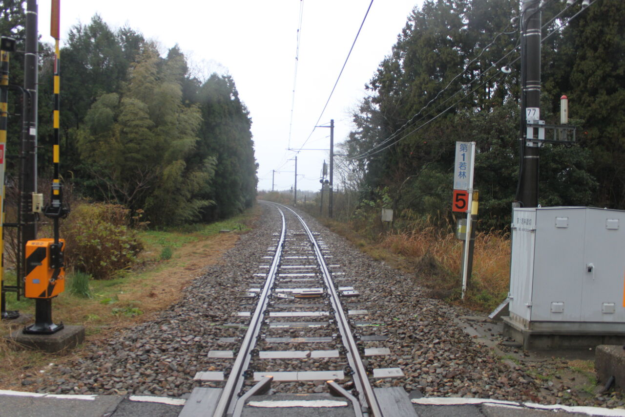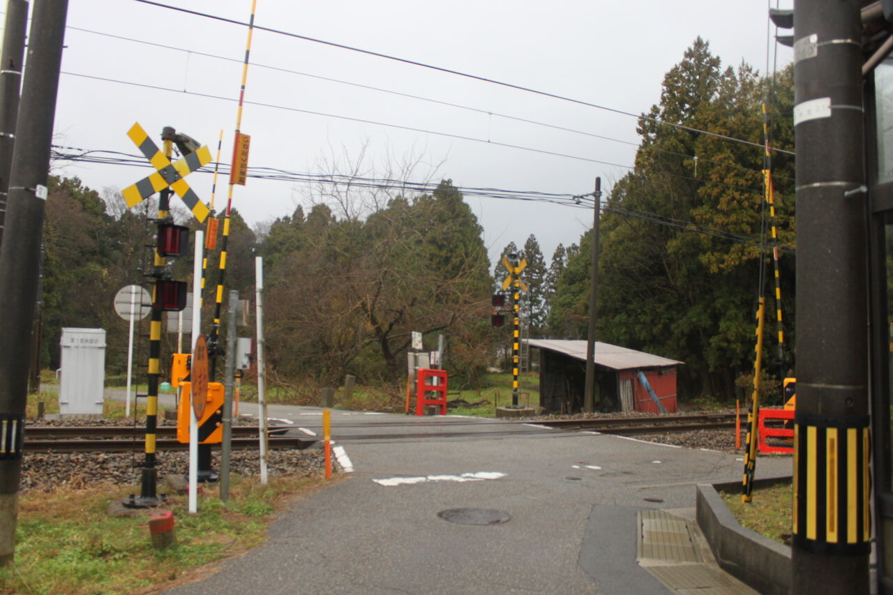 ↑こちらは徳田・和倉温泉・穴水方、下り方向の線路です。この先2か所の第1種踏切を経て徳田駅に至ります。