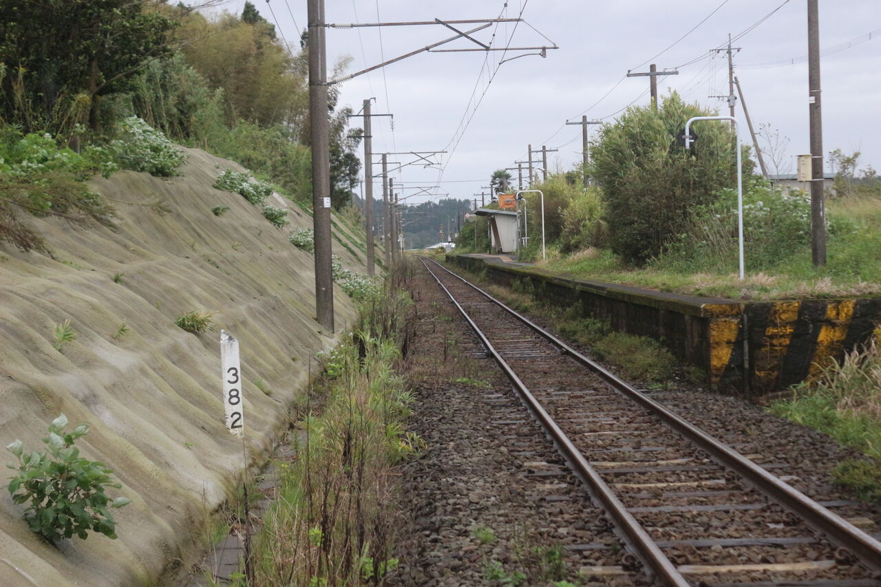単線で隣接しているJR餅原駅は行き違い交換設備がないことから、通過列車は高速で通り抜けていきます。
