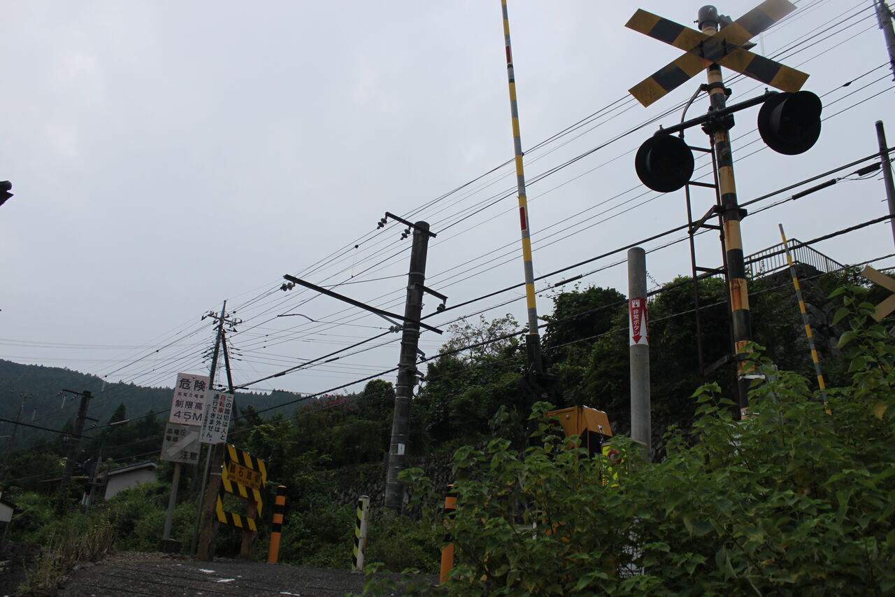 沢井地区にあって線路に平行する公道にへばりつくように設けられた第1種踏切です。