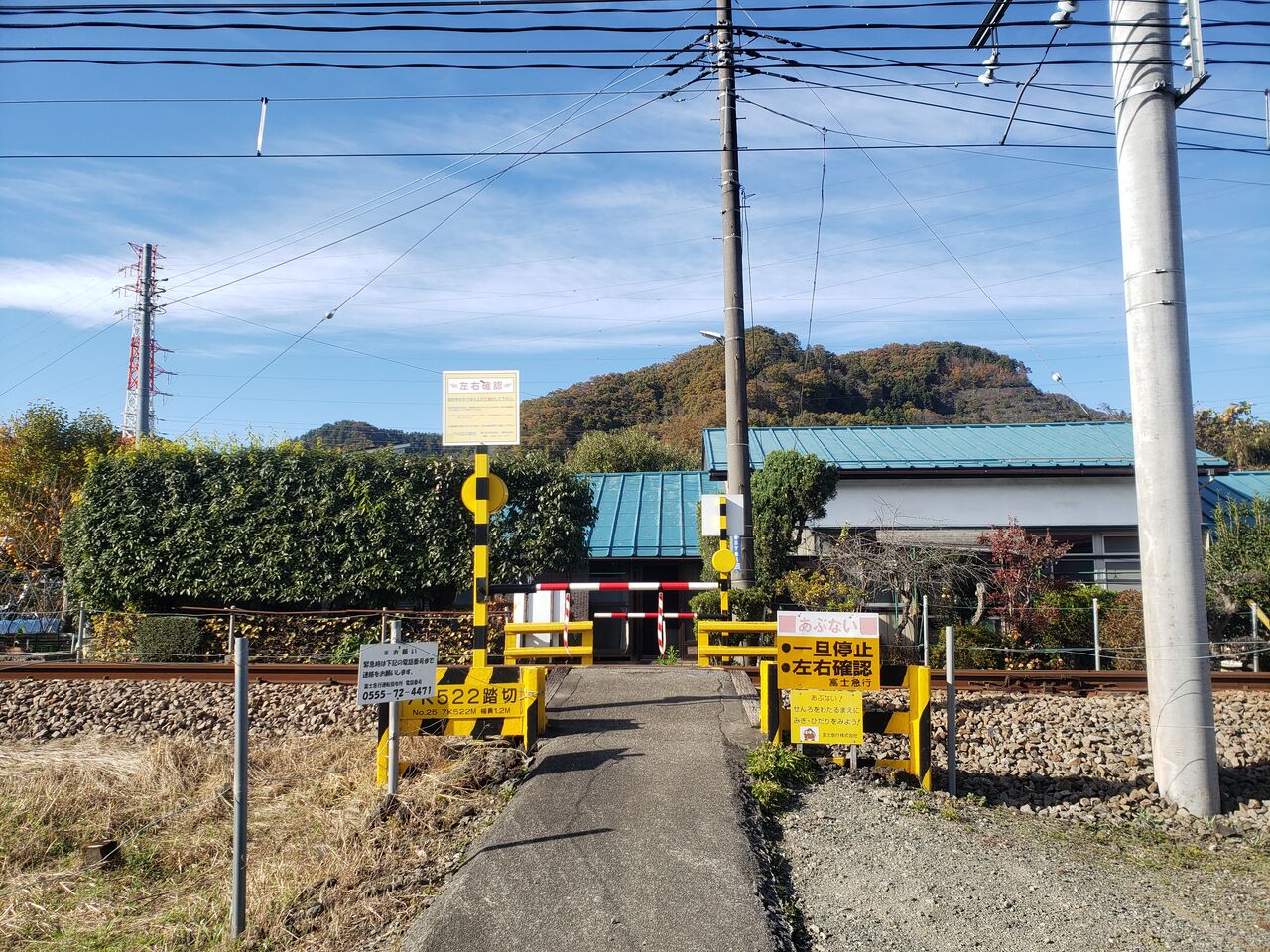 2024年04月23日 [FJ大月線]湯ノ沢踏切(13k613m) 〔踏切名称〕:湯ノ沢踏切〔所在区間〕:FJ大月線 東桂・三つ峠間〔地点距離程〕:大月起点 13k613m〔管理事業者〕:富士山麓電気鉄道〔踏切所在地〕:山梨県都留市桂町1156番地〔踏切種別〕:第1種踏切(自動車通行可)続きを読む タグ :#大月線#第1種踏切#山梨県
