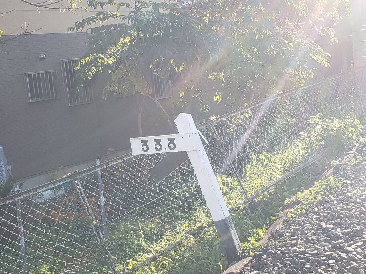 当踏切の先にはこのような勾配標があります。これは33.3パーミル?