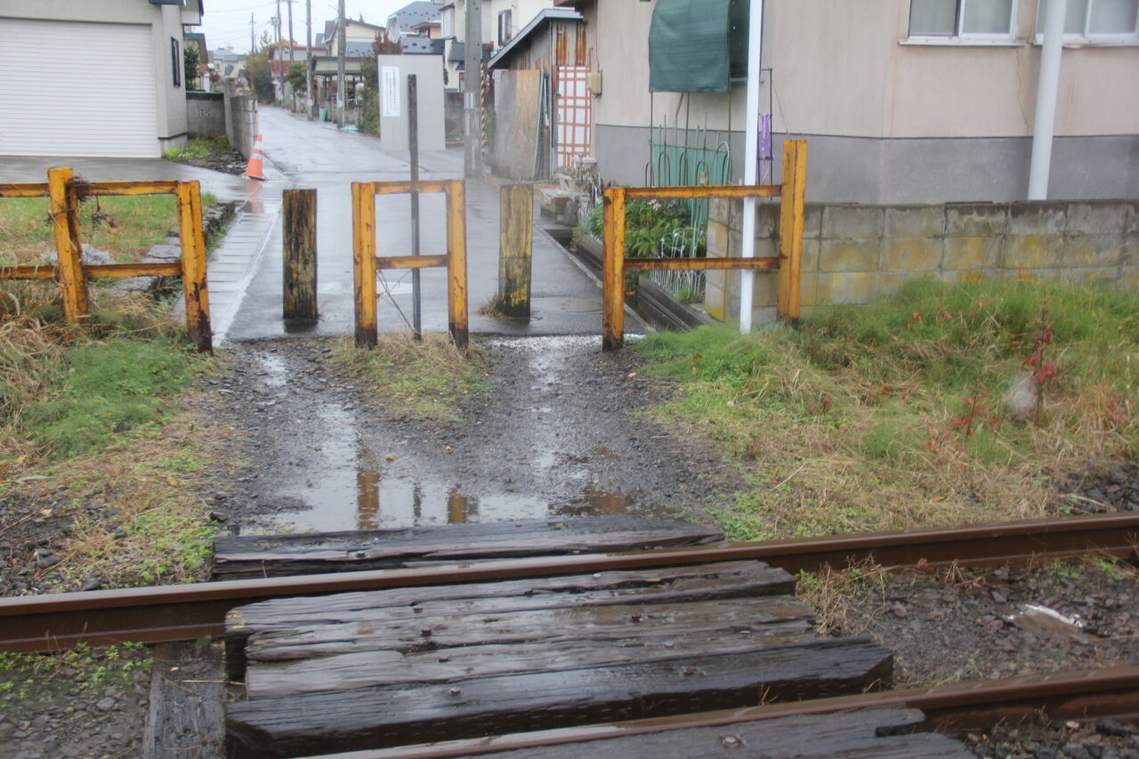 そんな駅近な立地ですが見落としそうな小ささ。周囲は宅地化されています。小規模な踏切で道幅も狭く歩行者専用となっています。