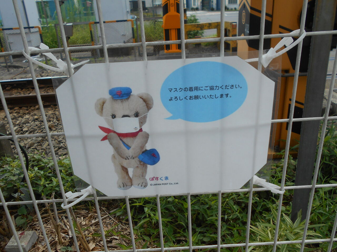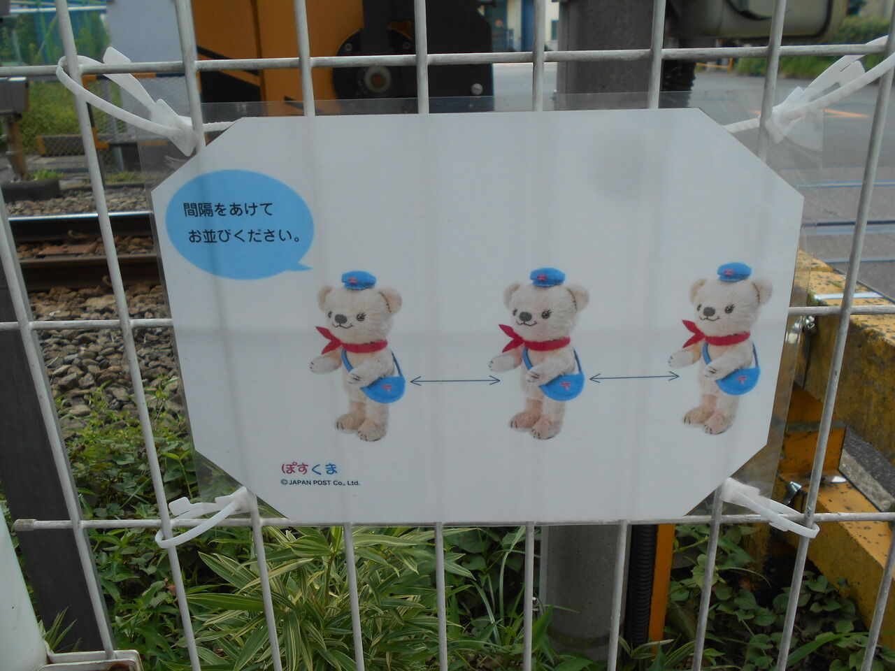 当踏切はすぐ横に日本郵政グループの寒川倉見郵便局があります。郵便局のフェンスには日本郵政のマスコット・ぽすくまが出ていました。