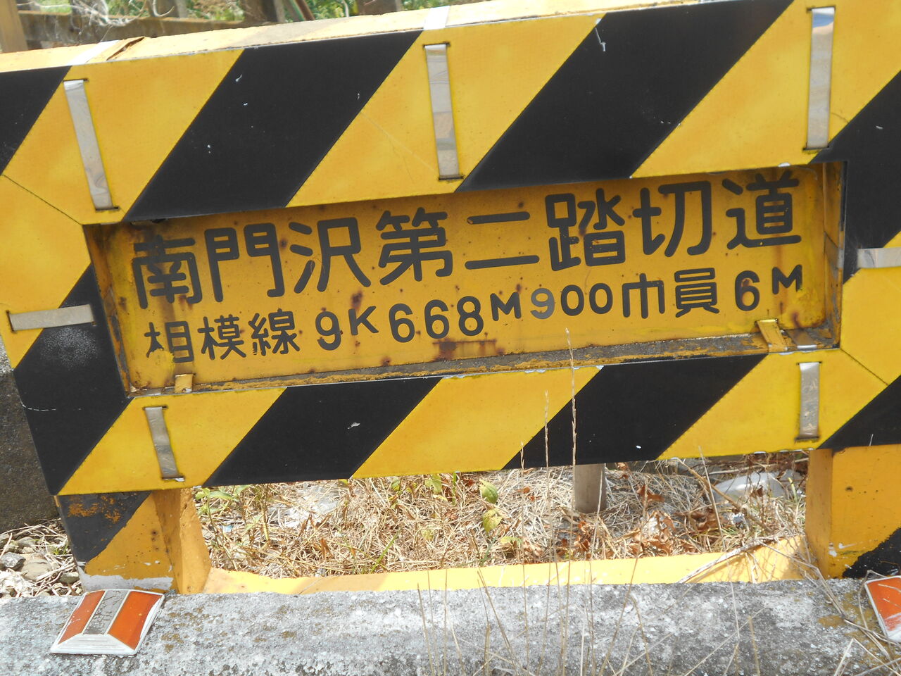旧国鉄東京南鉄道管理局の踏切名物・所在地併記看板によれば、当踏切の所在地は「海老名市門沢橋字源六島383-2」とありますが、現在は字表記を所在地表記に用いていません。