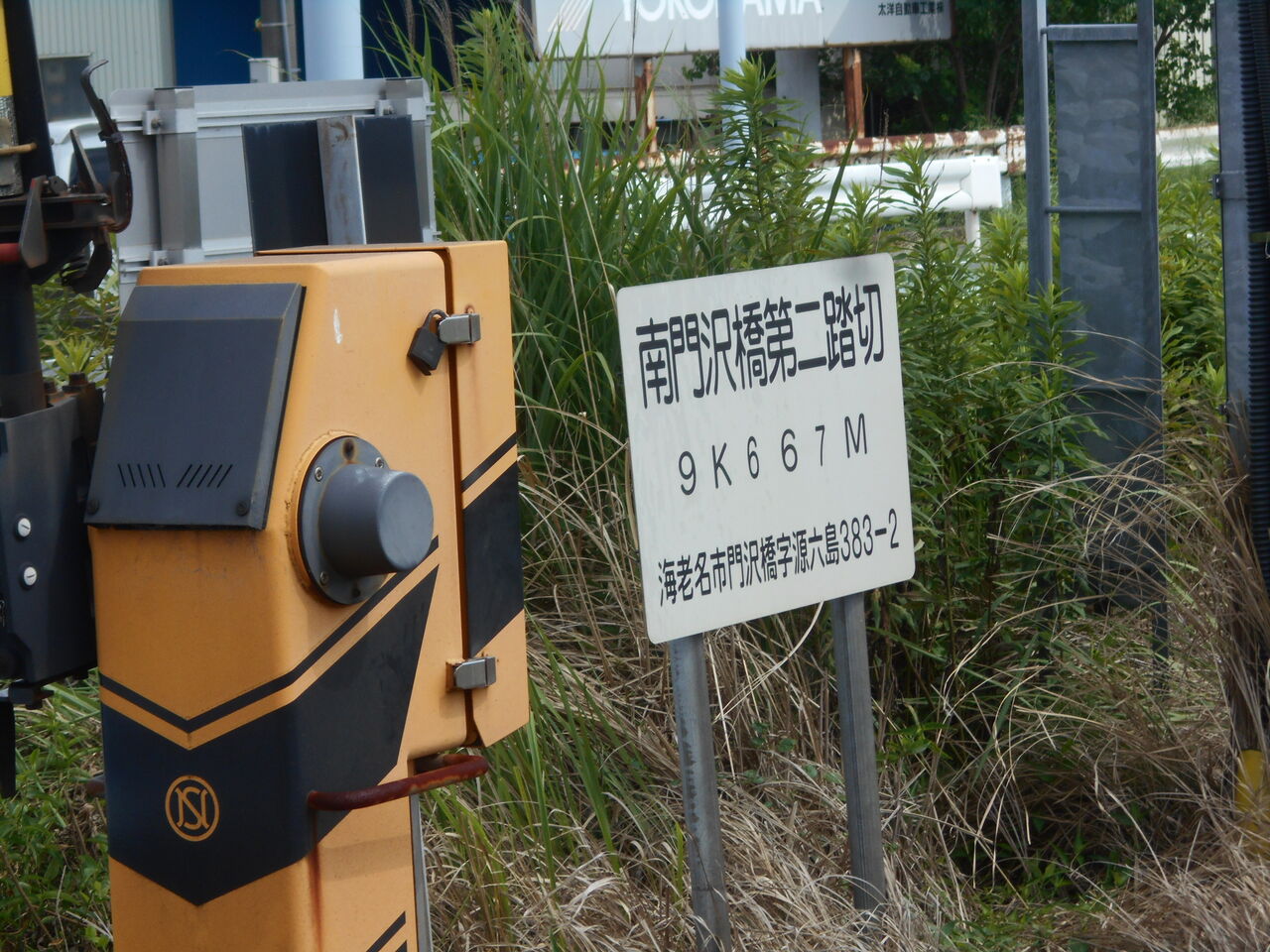 当踏切の踏切名称は「南門沢第二踏切道」といいます。「門沢」はこのあたりの地名で、古くは独立した自治体(村)でしたが、現在は合併されて海老名市の地名になっています。