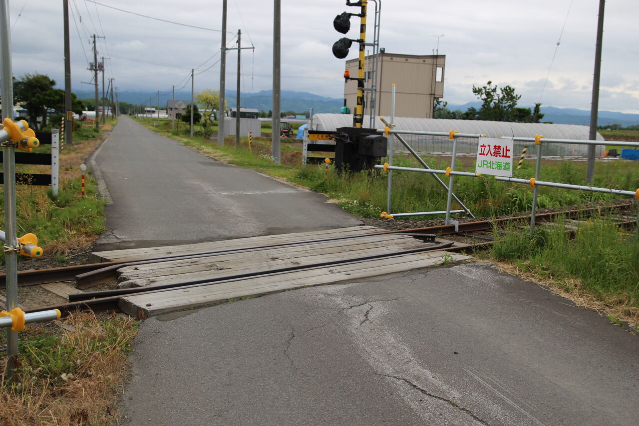 於札内駅にほど近い場所にありました。JR於札内駅は周囲を田畑に囲まれていましたが、当踏切は人の息吹を感じることができる場所にありました。