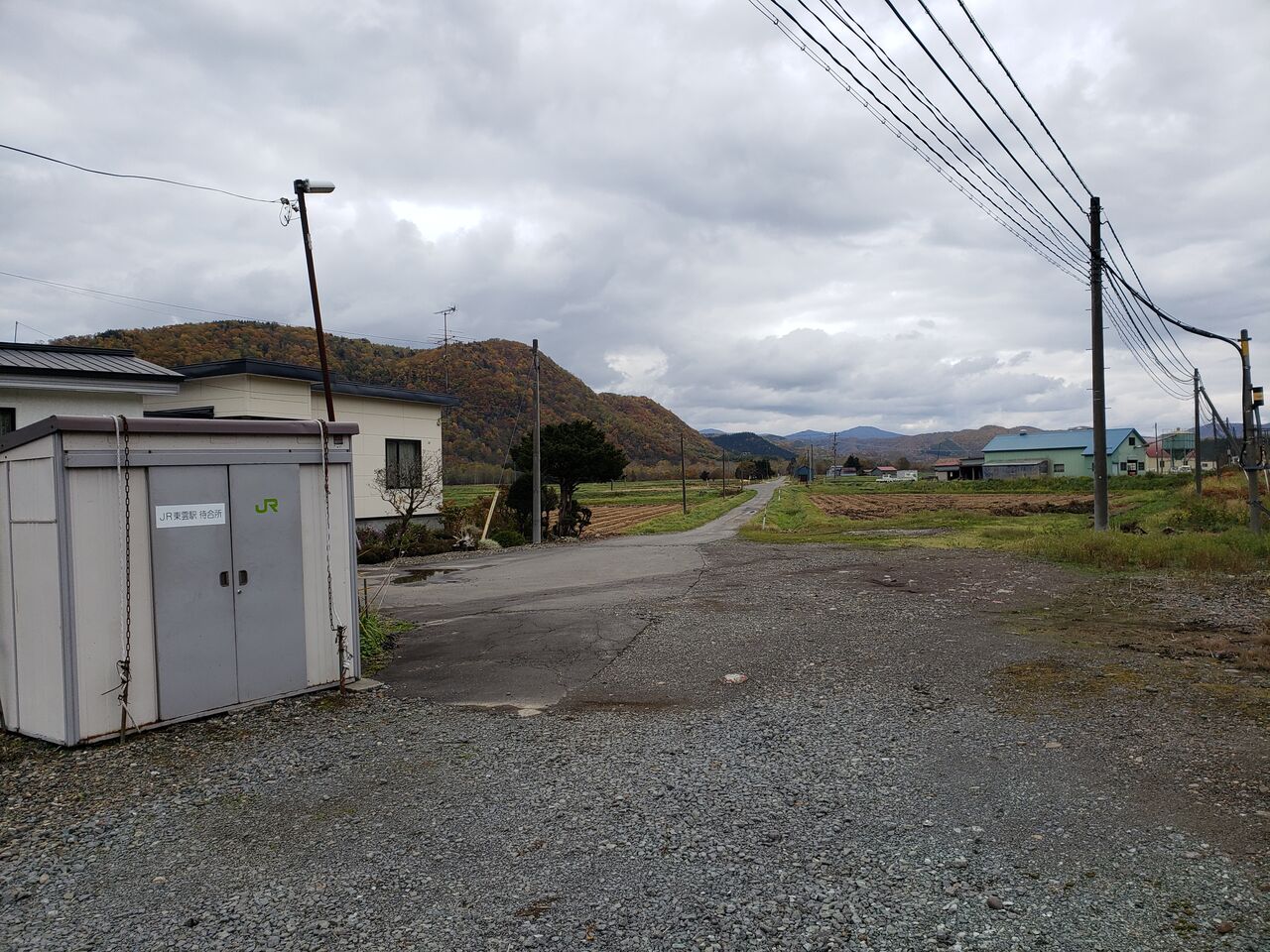 駅前と踏切を背にした外の様子です。実はここ、この踏切のお宅の方の私有地なんだそうです。砂利敷き部分がそれにあたるんだとかで。なので自動車で東雲駅にご来訪を検討されておられるマニアの皆さん、不用意な駐車行為には気を付けましょう(このお宅の住人さんとの雑談をして伺いました)。