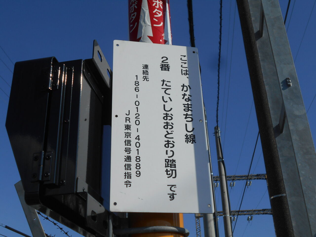 非常ボタン取扱注意札看板には「たていしおおどおり」とフリガナが示されています。