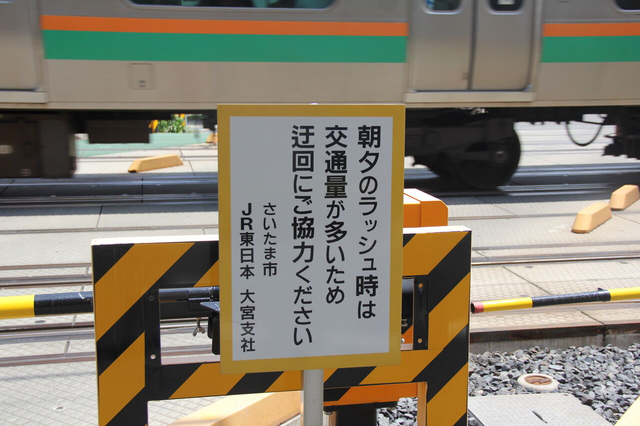 通行量が多いため迂回しろという少々乱暴な看板が出ています。迂回した先も同じ東北線の踏切だとしたら、迂回したところであまり意味がない気もしないでもありませんが・・・。
