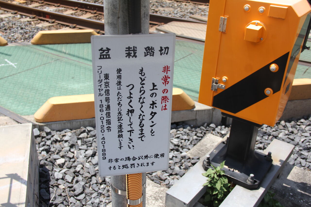 踏切名称は「盆栽踏切」です。東京・小石川で盆栽業者を営んでいた人が大正12(1923)年の関東大震災でこの付近(源太郎山)に転居してきた場所なので大宮盆栽村と呼ぶようになり、大宮市の地名として残っていることから名付けられたということのようです。