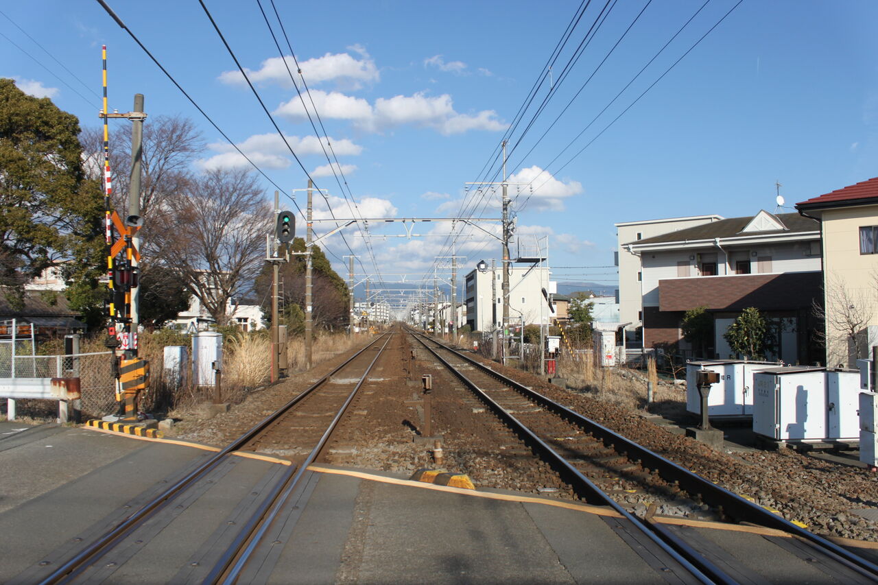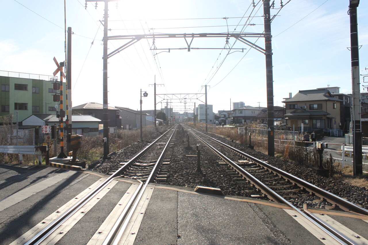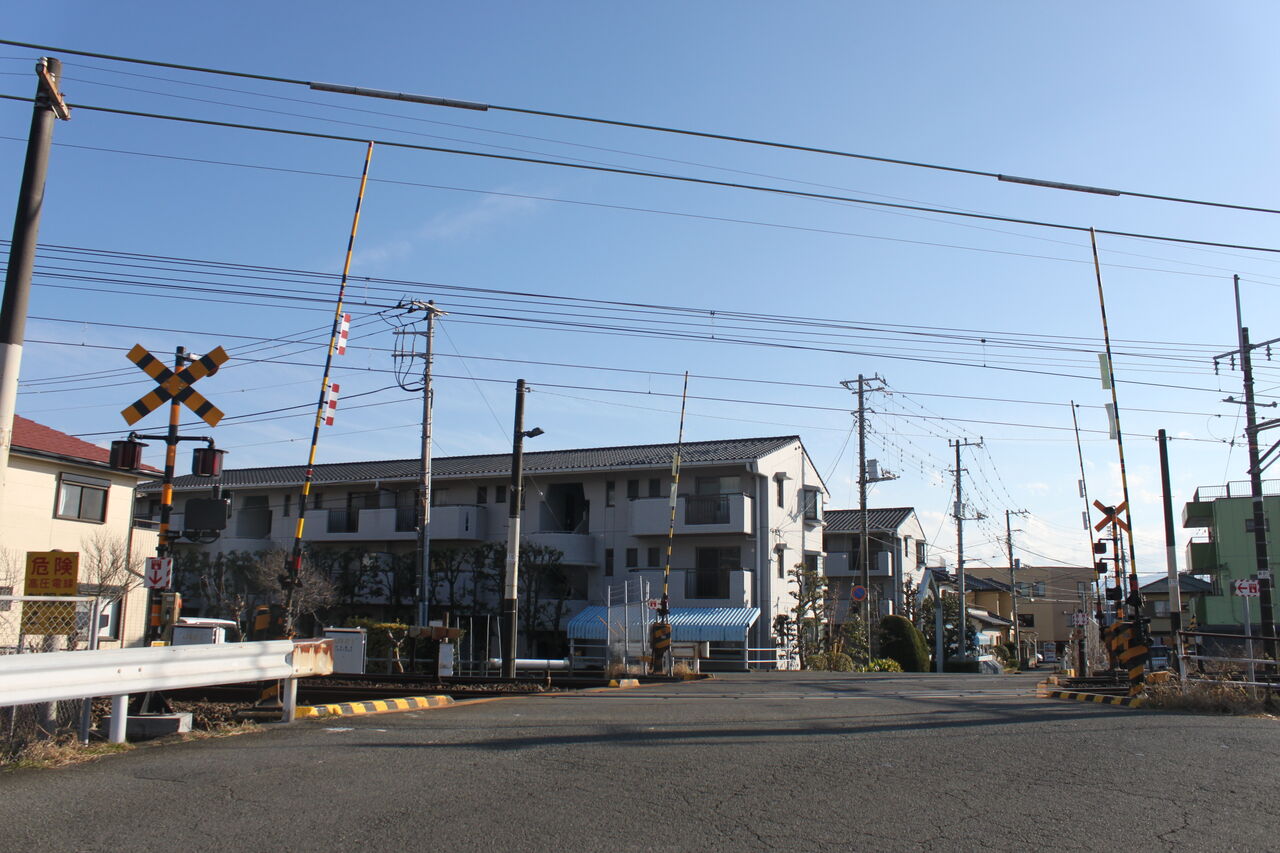 団地が多く、歩行者・車両いずれも通行が多い印象の踏切です。