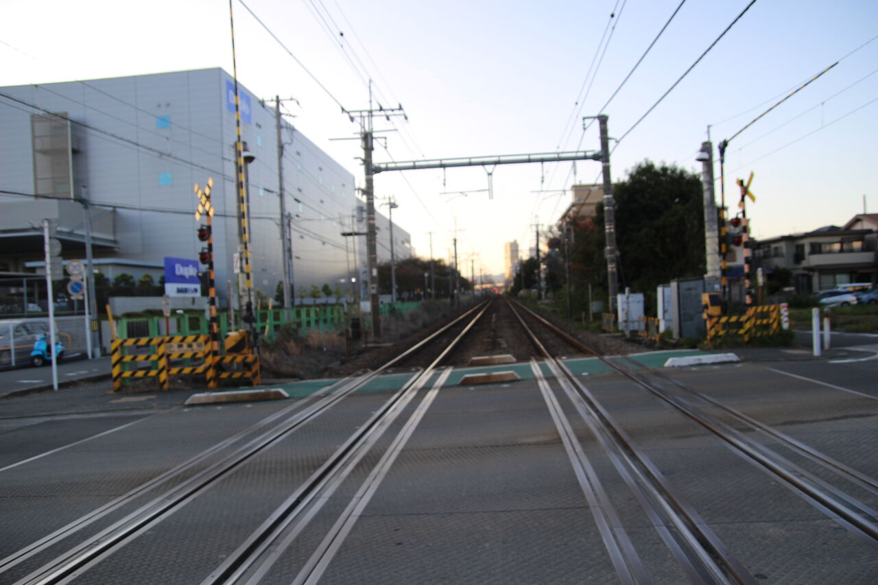 訪問・撮影時間が夕方であるためわかりにくいですが、交通量が多く常に自動車が行き来している忙しい踏切です。