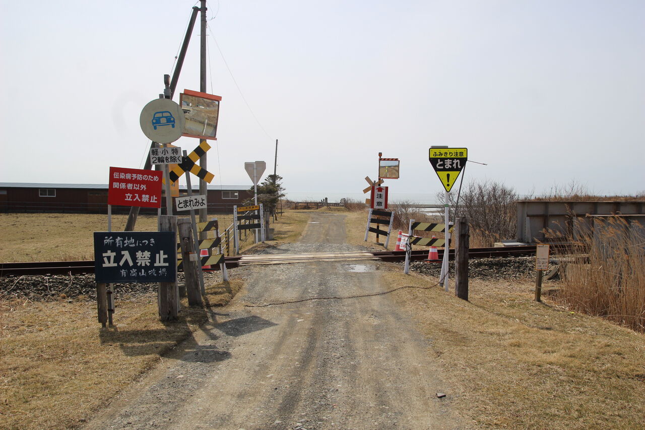 2021年05月28日 [JR日高線]浜山道路踏切(55k829m) 〔踏切名称〕:浜山道路踏切〔所在区間〕:JR日高線 日高門別・豊郷間〔地点距離程〕:苫小牧起点 55k829m〔管理事業者〕:北海道旅客鉄道〔踏切所在地〕:北海道沙流郡日高町豊郷〔踏切種別〕:第4種踏切(自動車通行不可・私道)※2021年3月31日で当該区間の路線廃止により閉鎖・撤去予定続きを読む タグ :#日高線#第4種踏切#北海道#廃線