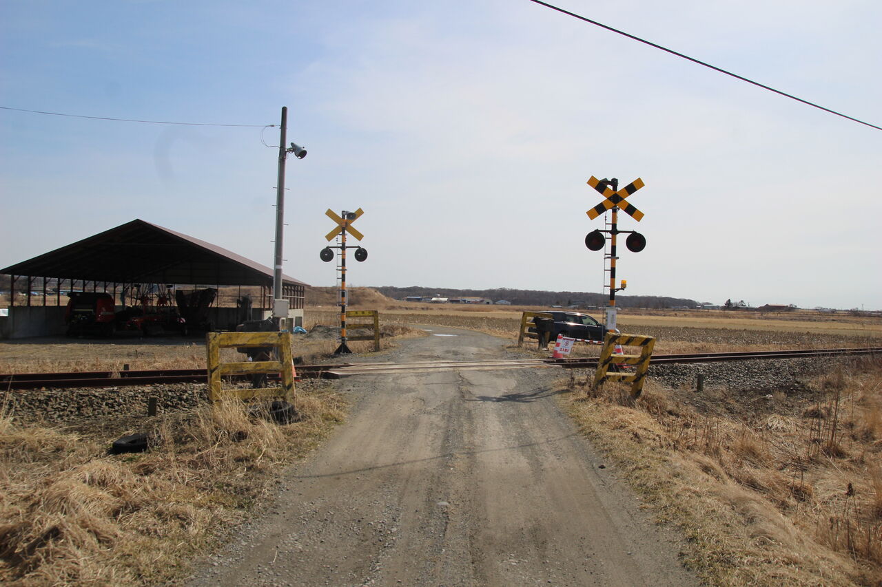 2021年06月26日 [CRふるさと銀河線]斉藤踏切(16k000m付近) 〔踏切名称〕:斉藤踏切〔所在区間〕:CRふるさと銀河線 高島・大森間〔地点距離程〕:池田起点 16k000m付近〔管理事業者〕:北海道ちほく高原鉄道〔踏切所在地〕:北海道中川郡池田町大森〔踏切種別〕:第1種踏切(自動車通行可)※2006年4月20日路線廃止続きを読む タグ :#ふるさと銀河線#第1種踏切#北海道#廃線
