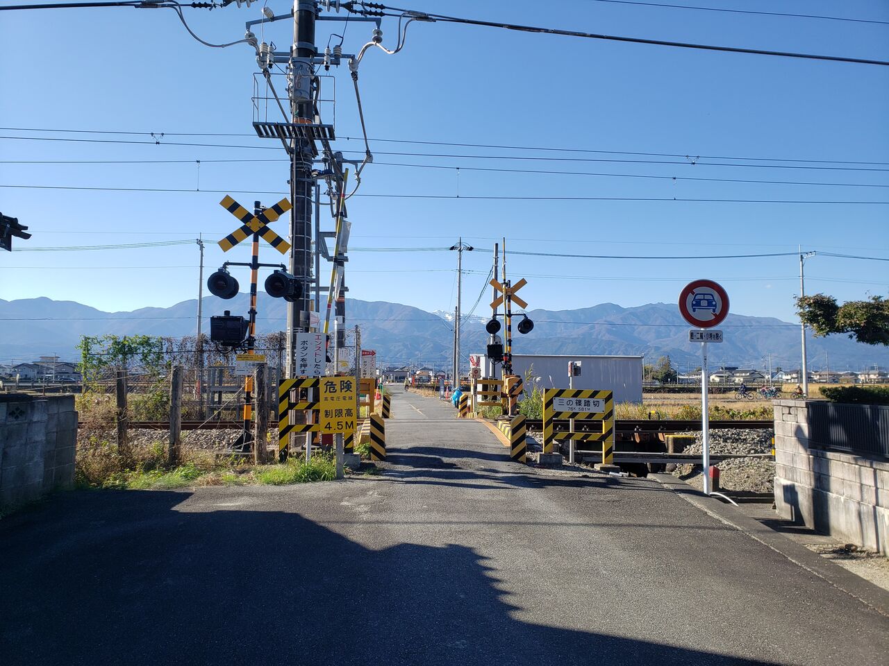 2023年06月27日 [JR身延線]三の篠踏切(76k581m) 〔踏切名称〕:三の篠踏切〔所在区間〕:JR身延線 東花輪・小井川間〔地点距離程〕:富士起点 76k581m〔管理事業者〕:東海旅客鉄道〔踏切所在地〕:山梨県中央市下三條1176番地〔踏切種別〕:第1種踏切(自動車通行不可・小特と二輪は可)続きを読む タグ :#身延線#第1種踏切#山梨県